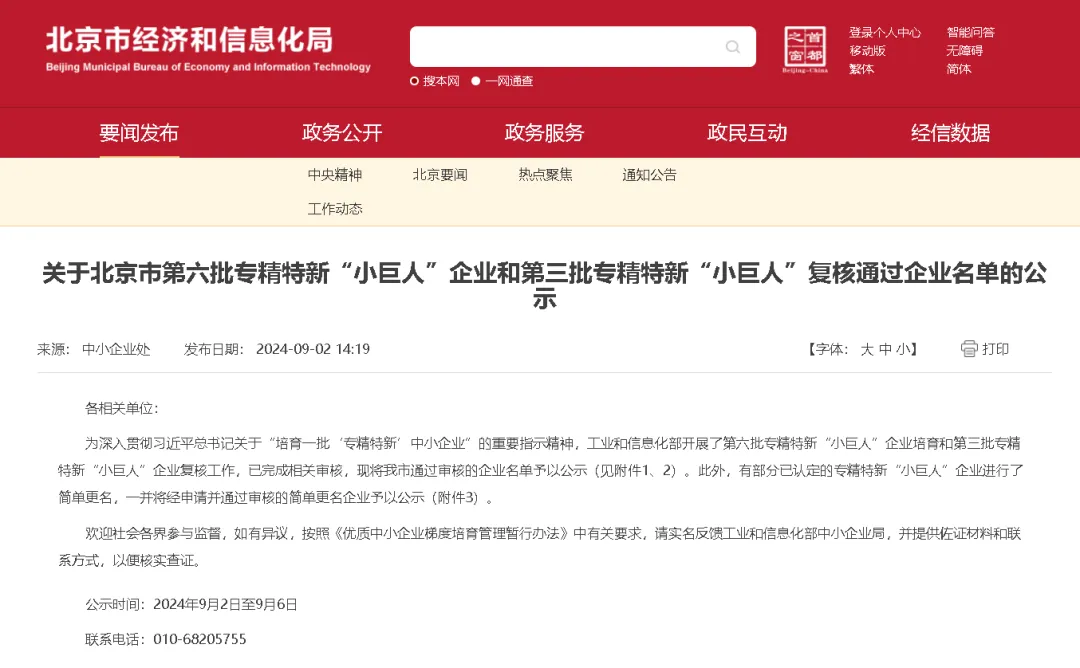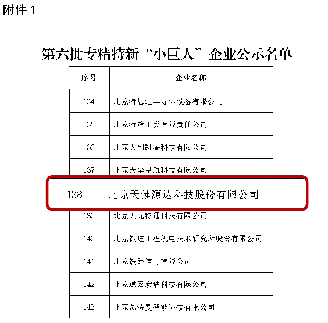 9月2日,北京市經(jīng)濟(jì)和信息化局正式公布了“工業(yè)和信息化部第六批專精特新‘小巨人’企業(yè)”名單,北京天健源達(dá)科技股份有限公司(以下簡稱“天健”)成功獲批專精特新“小巨人”企業(yè)資質(zhì)。